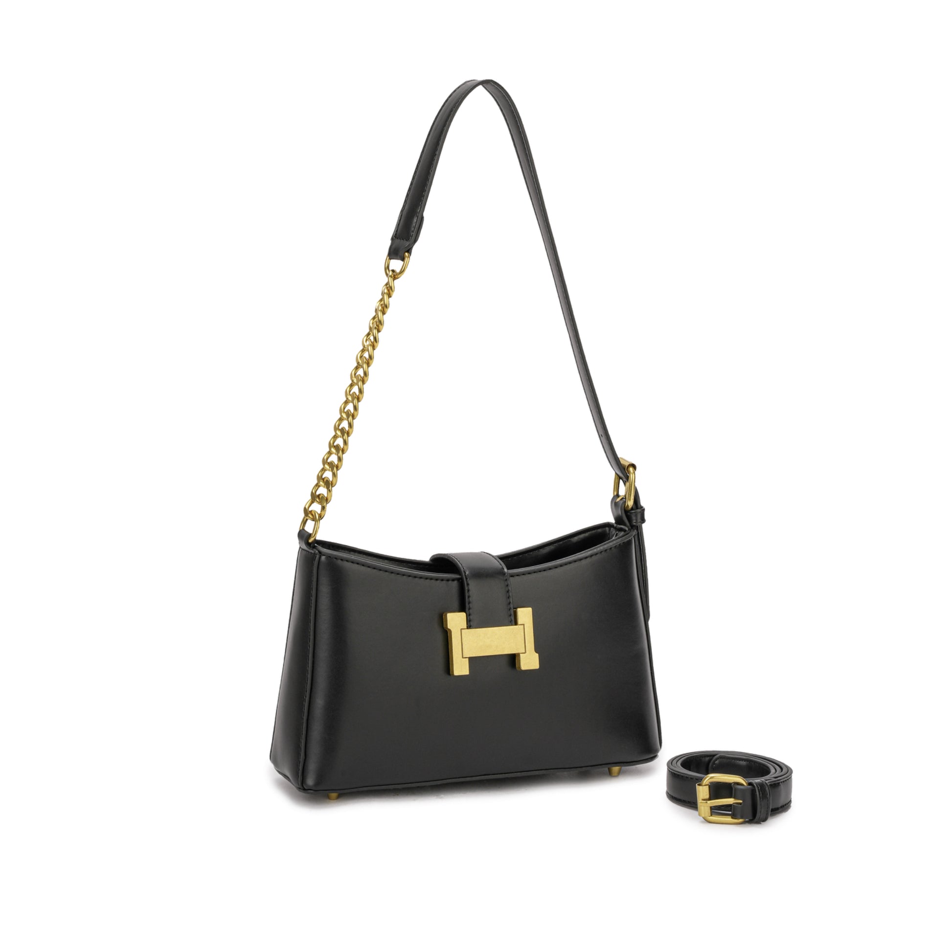 Elegante e sofisticada, essa bolsa estruturada é o acessório perfeito para elevar qualquer produção. Seu design moderno conta com fecho metálico frontal, detalhe de corrente dourada na alça e acabamento impecável, trazendo charme e exclusividade ao look.