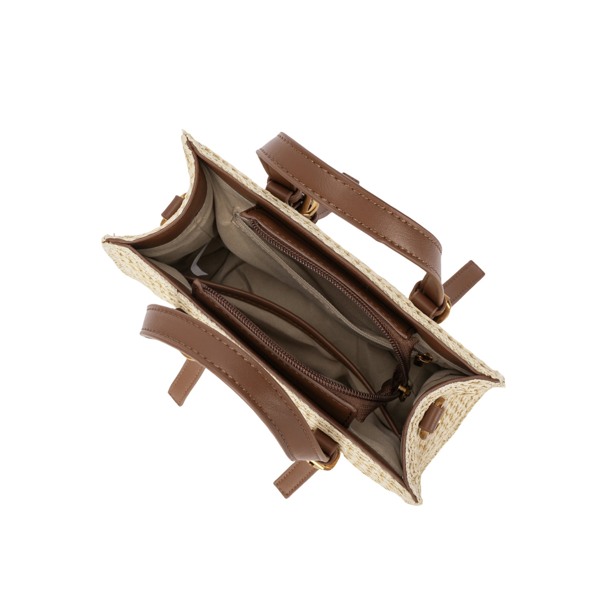 Verão chic com praticidade! A Ilha Bela é feita em palha sintética trançada com detalhes em sintético liso e ferragens douradas. O design estruturado mantém o formato, enquanto a alça de mão dupla e a alça longa larga e ajustável (removível) garantem conforto no uso de ombro ou transversal.