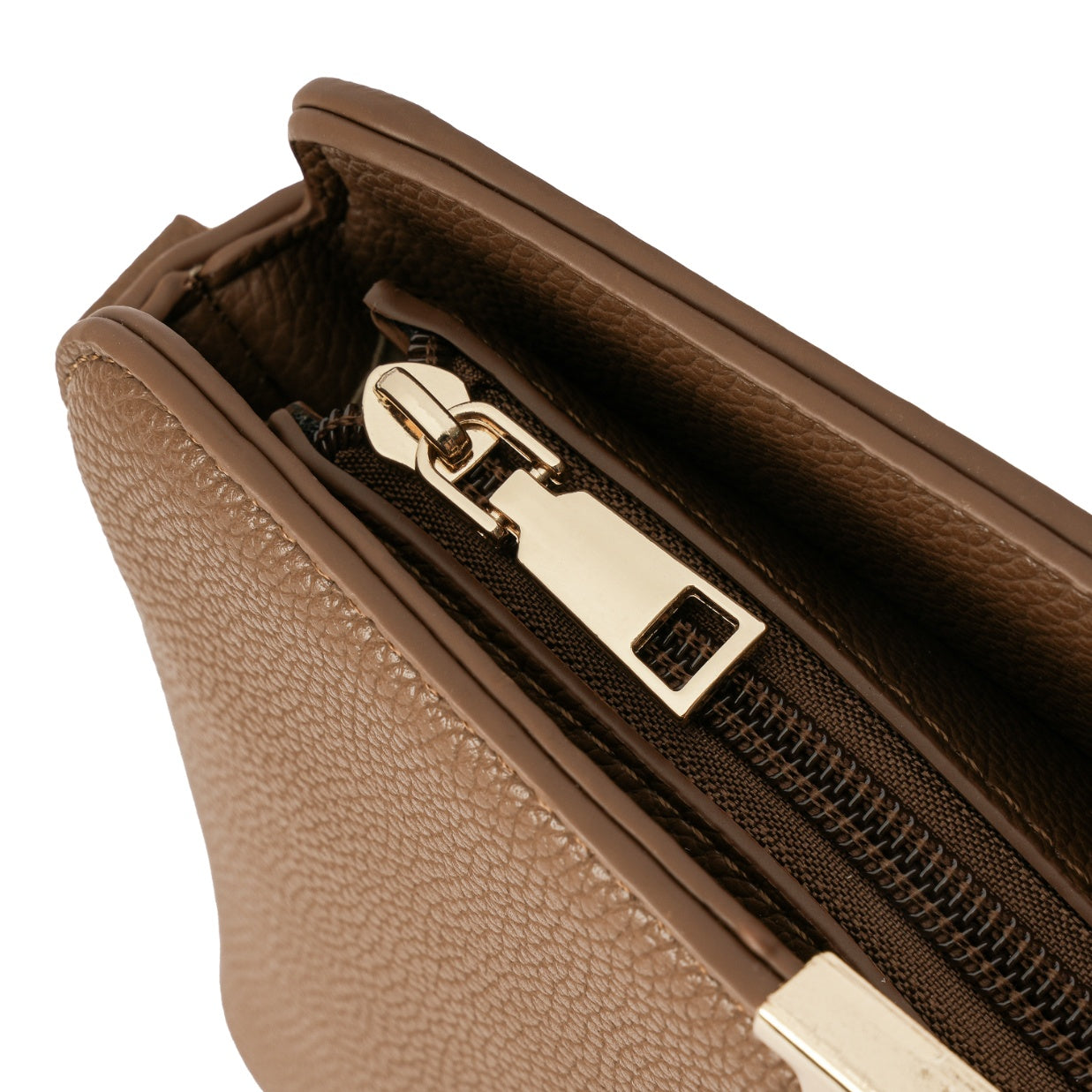 • Detalhe frontal em metal dourado
