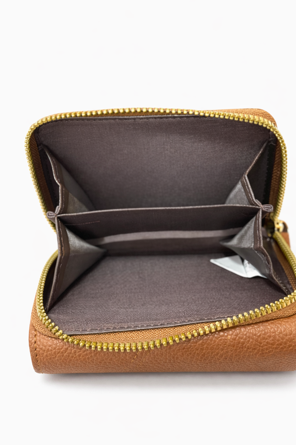 Conta com fechamento em zíper metálico, divisórias internas para moedas, cartões e cédulas, além de compartimento com visor para documentos. A alça de mão traz ainda mais praticidade para o uso diário, perfeita para levar sozinha ou dentro da bolsa.