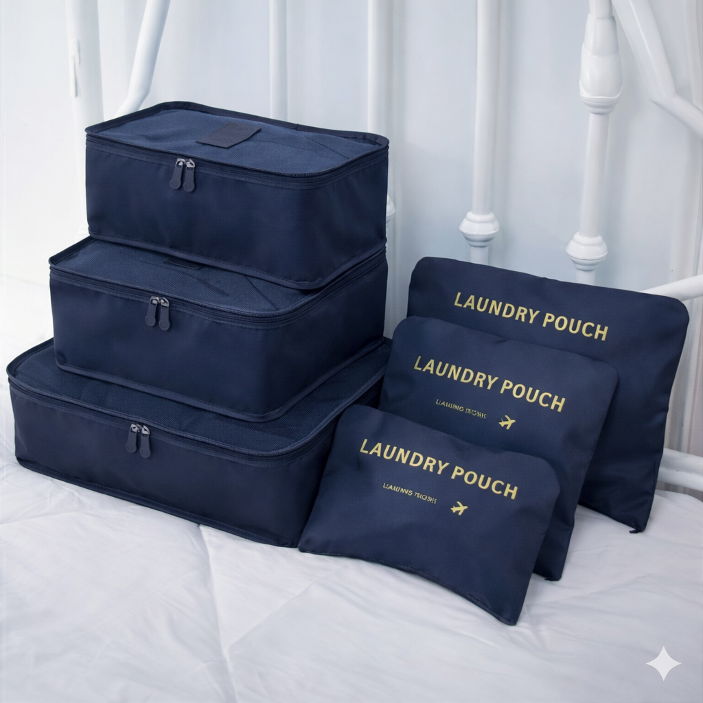 O conjunto é composto por organizadores em diferentes tamanhos, ideais para roupas, roupas íntimas, calçados, pijamas e acessórios. Fabricados em material leve, resistente e durável, ajudam a otimizar o espaço da mala e evitam que as peças amassem ou se misturem.